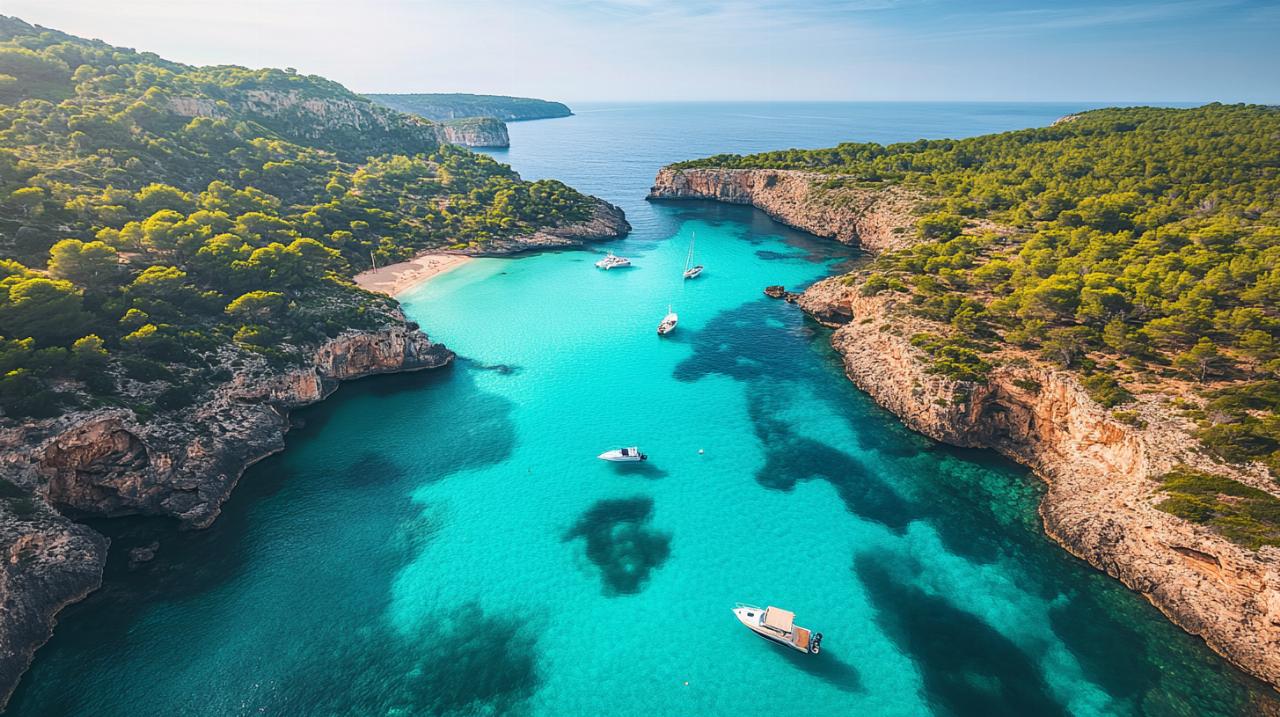 Dès les premiers pas sur le sentier, les vues panoramiques sur la côte méditerranéenne s'imposent avec une force saisissante. Le chemin surplombe des falaises vertigineuses où les pins maritimes s'accrochent aux parois rocheuses, créant des tableaux naturels d'une beauté saisissante. Par temps clair, le regard embrasse une succession de criques et de caps qui se perdent dans la brume de chaleur au loin. La végétation méditerranéenne déploie ses parfums de thym, de romarin et de lavande qui embaument l'air marin. En descendant progressivement vers la mer, la couleur de l'eau évolue du bleu profond au turquoise éclatant, révélant la clarté exceptionnelle qui caractérise ces eaux protégées. Les formations rocheuses qui encadrent Cala Futadera deviennent de plus en plus impressionnantes à mesure que l'on s'en approche, témoignant de millions d'années d'érosion par les vagues et le vent. Ces panoramas récompensent amplement l'effort physique consenti et offrent d'innombrables occasions de photographies mémorables.